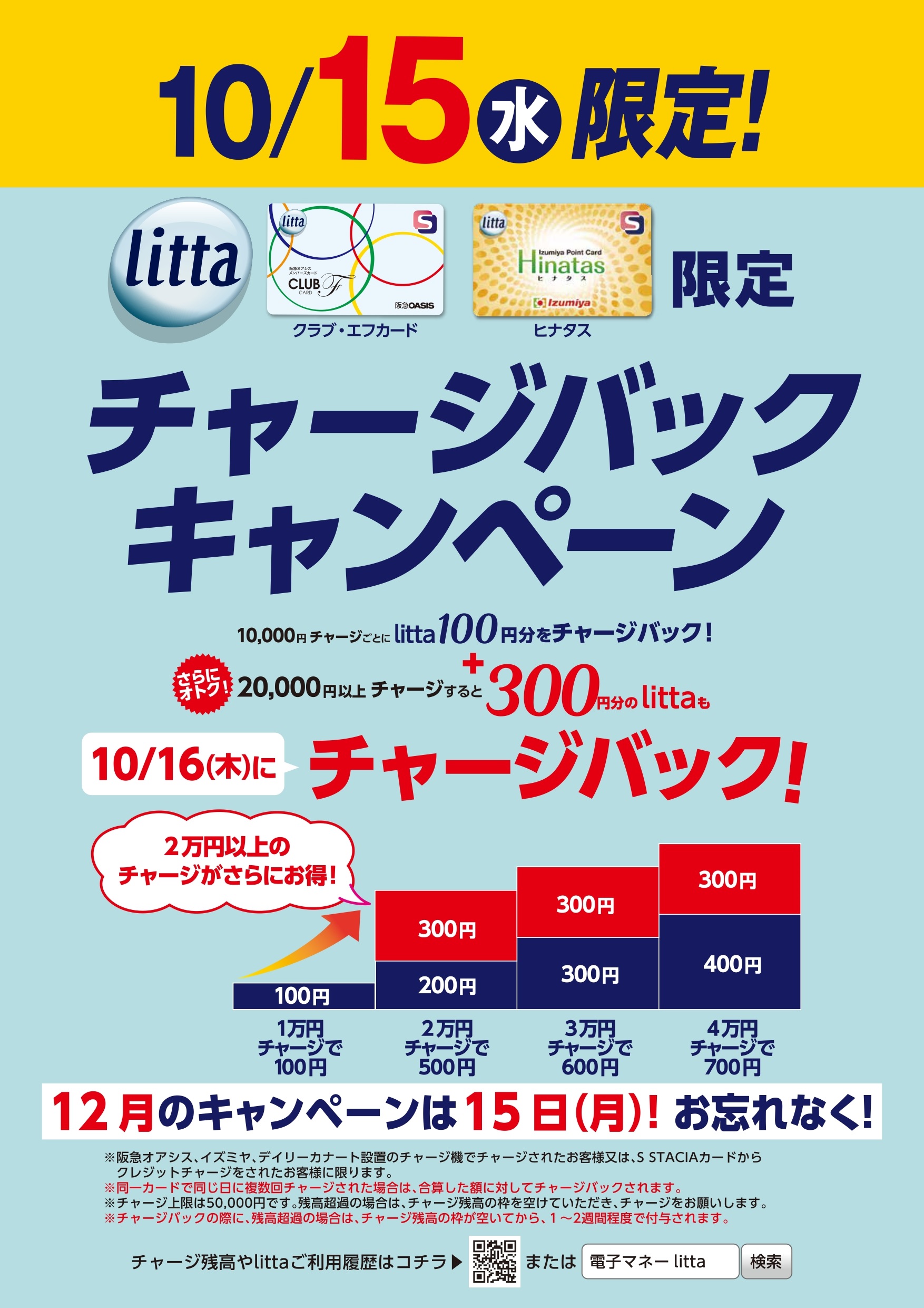○(litta1)10月15日(水)litta限定チャージバックキャンペーン!