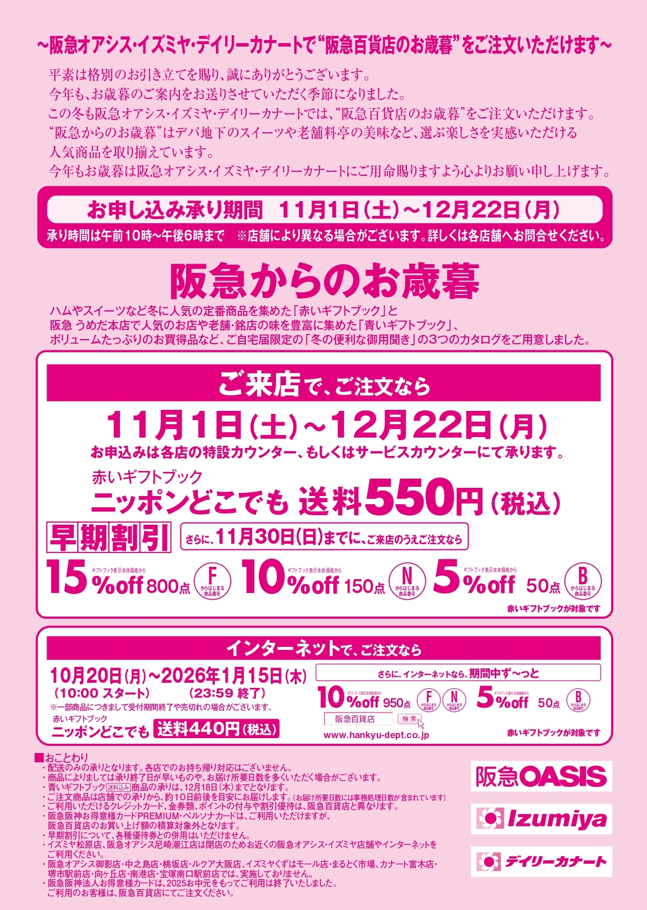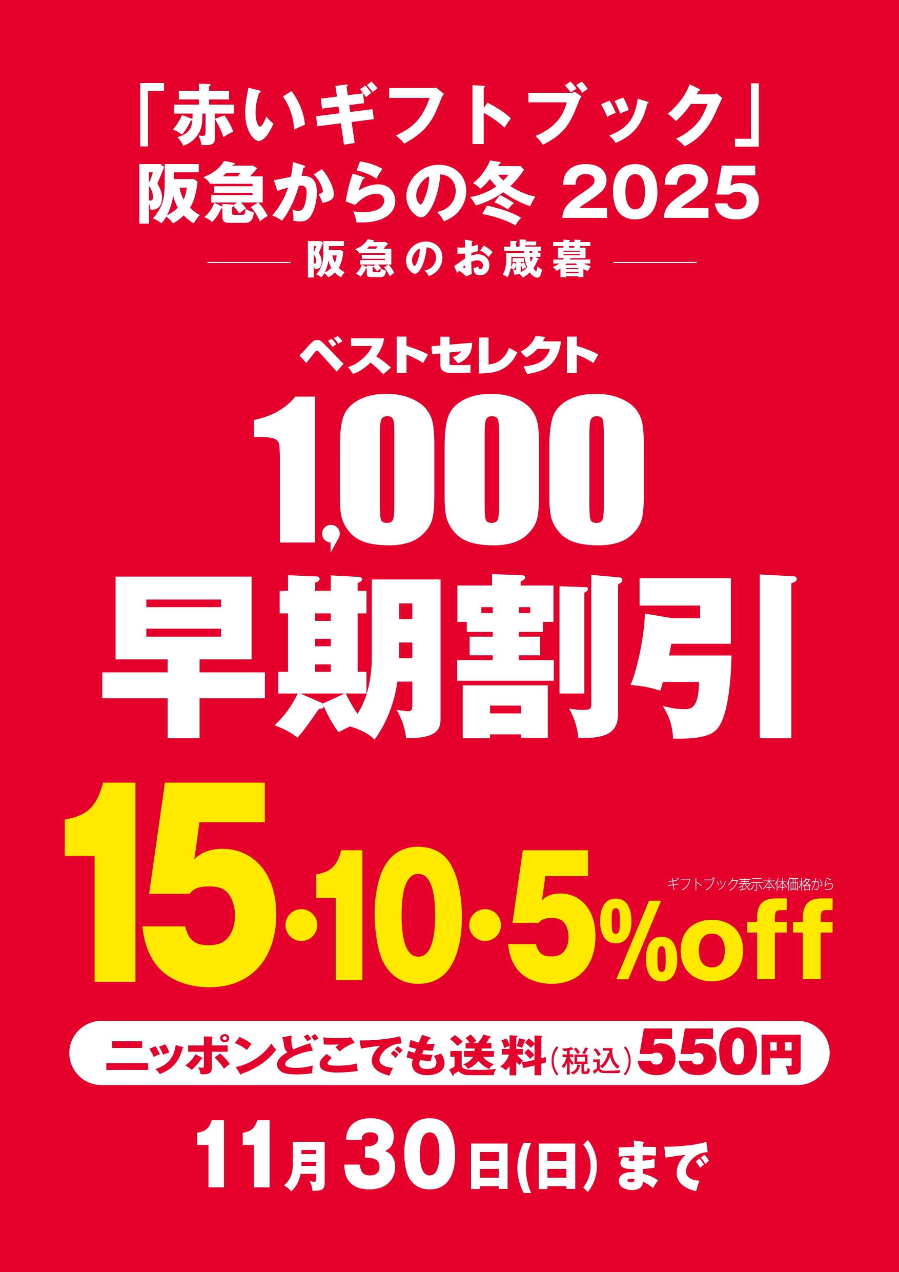 〇阪急からのお歳暮「赤いギフトブック」 早期割引の承りは11月30日(日)午後6時まで