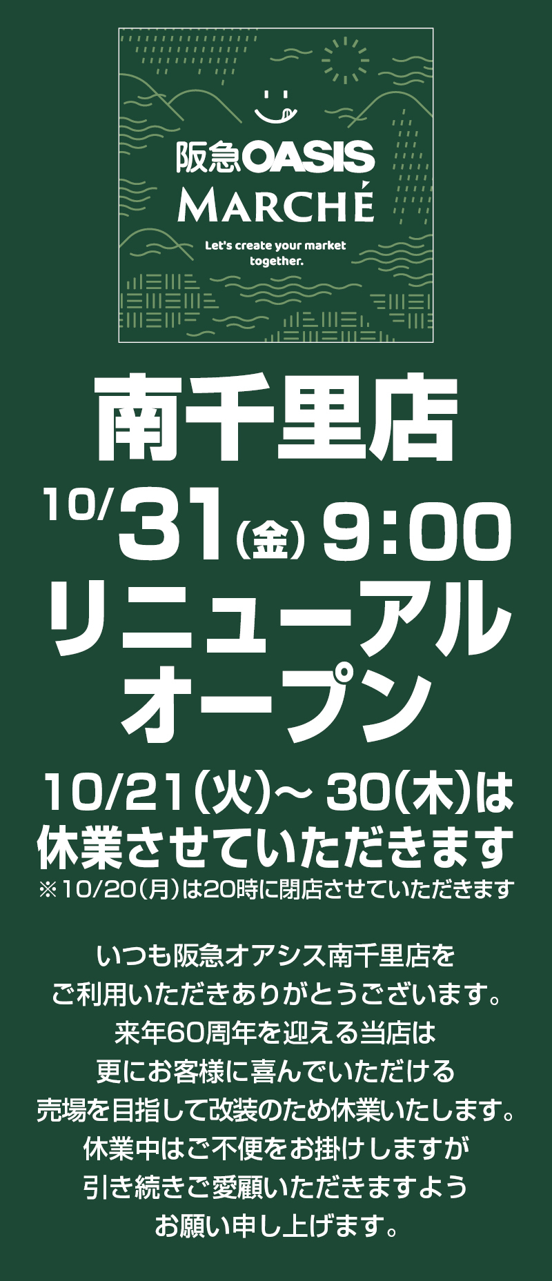 南千里店 10月31日(金)9:00リニューアルオープン!