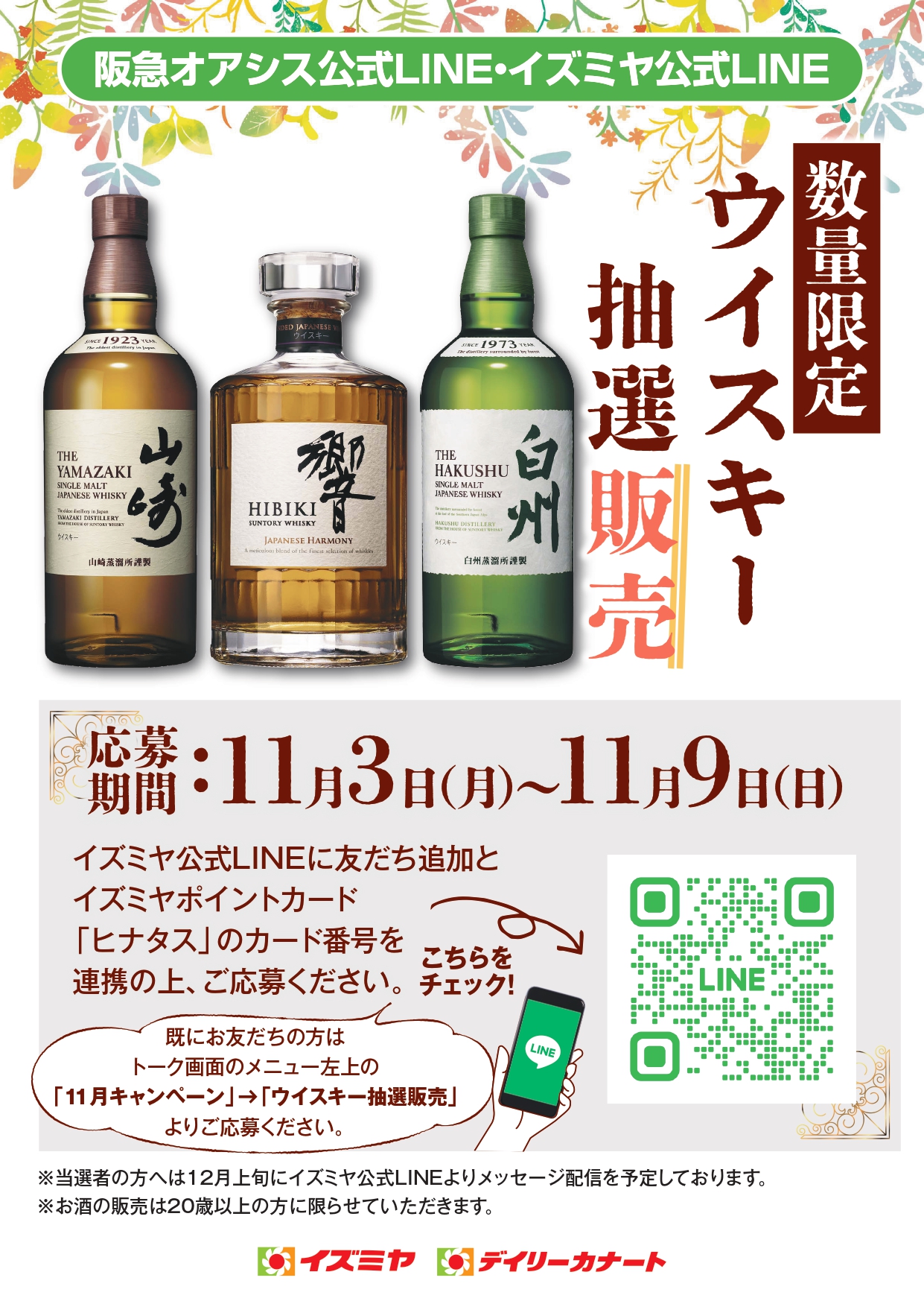 【阪急オアシス公式LINE・イズミヤ公式LINE】 数量限定ウイスキー抽選販売!