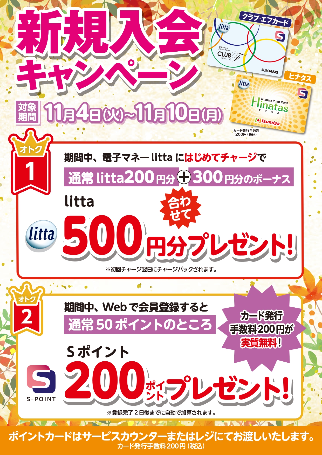 11月4日(火)~11月10日(月)新規入会キャンペーン