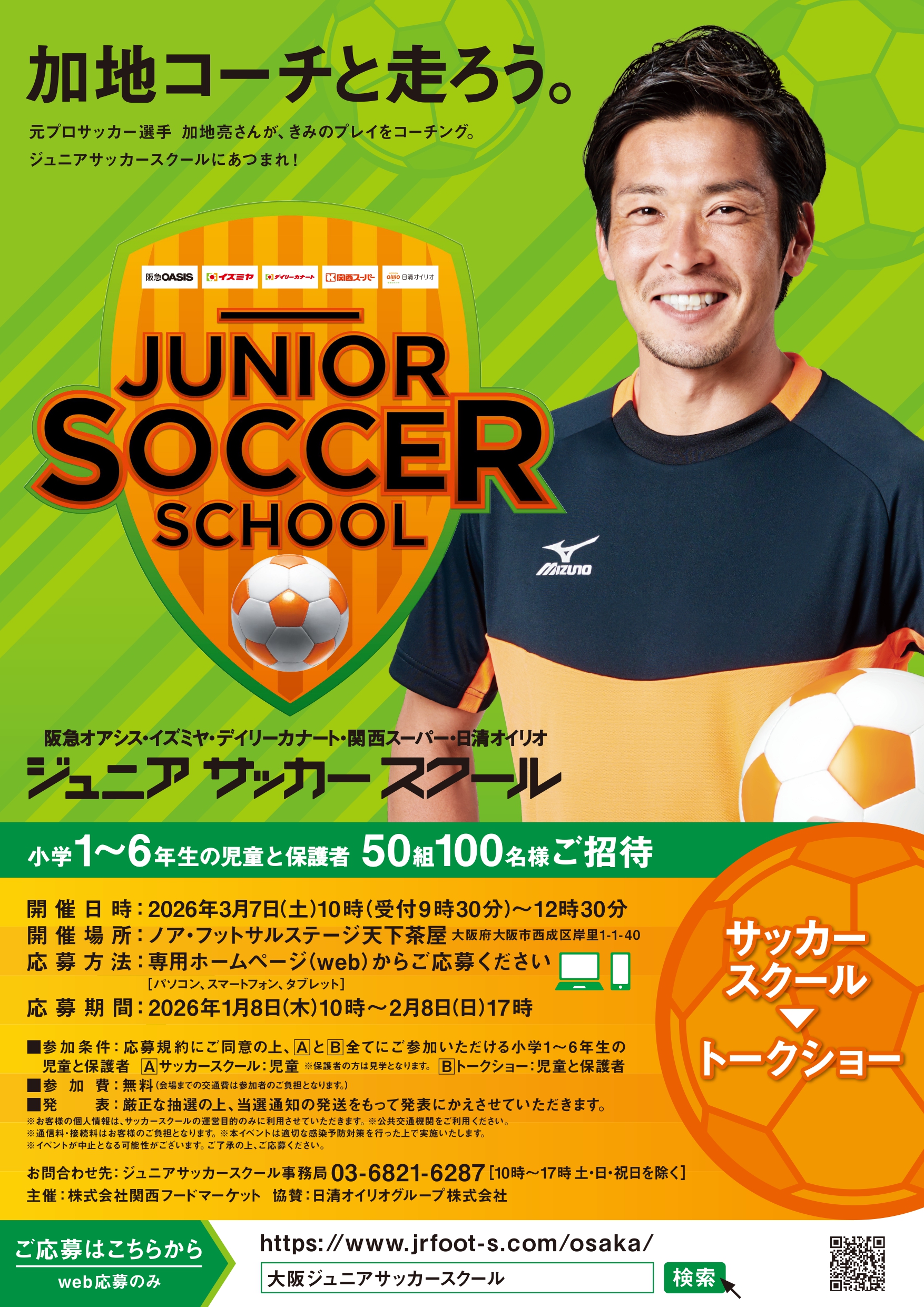 抽選で50組100名様ご招待!加地コーチと走ろう。ジュニアサッカースクール